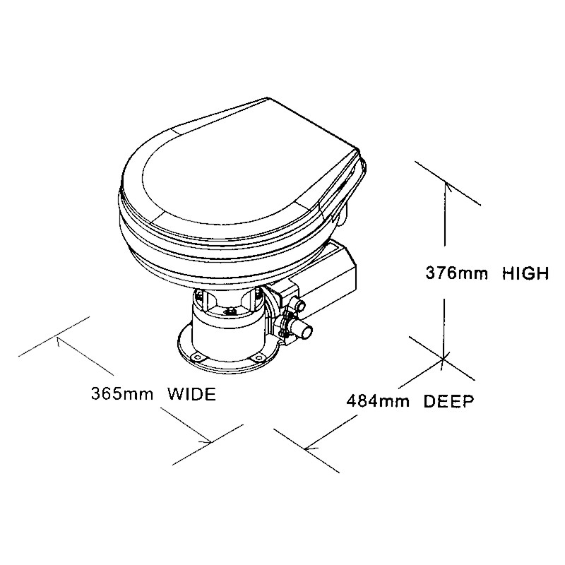 WC marino elettrico modello LARGE, in porcellana bianca sedile in plastica fornito con interruttore per il comando della pompa. Certificati CE ISO 8846 (Ignition Protection). Completo di pannello elettrico art. 2424906.